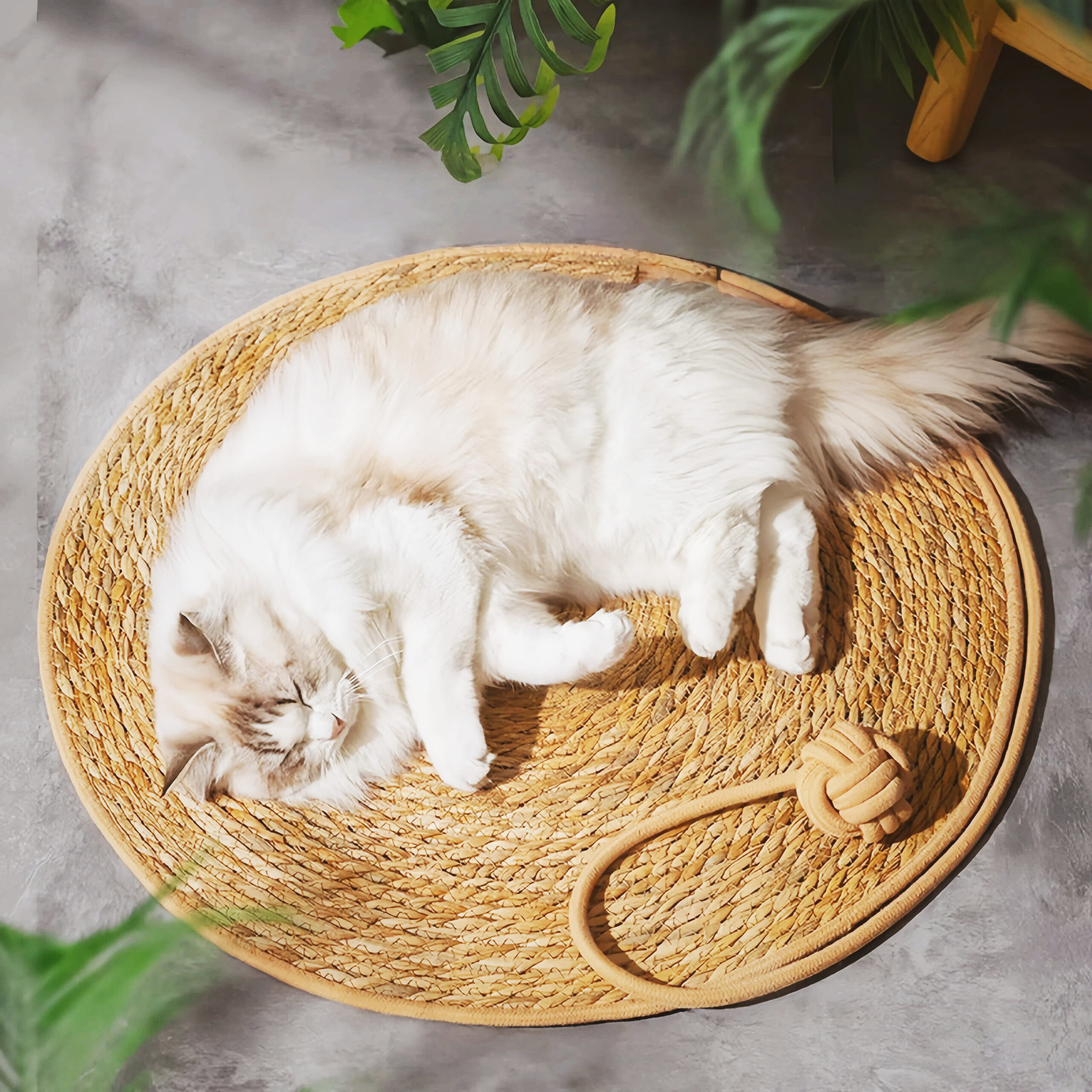 蒲草编织圆形猫抓垫