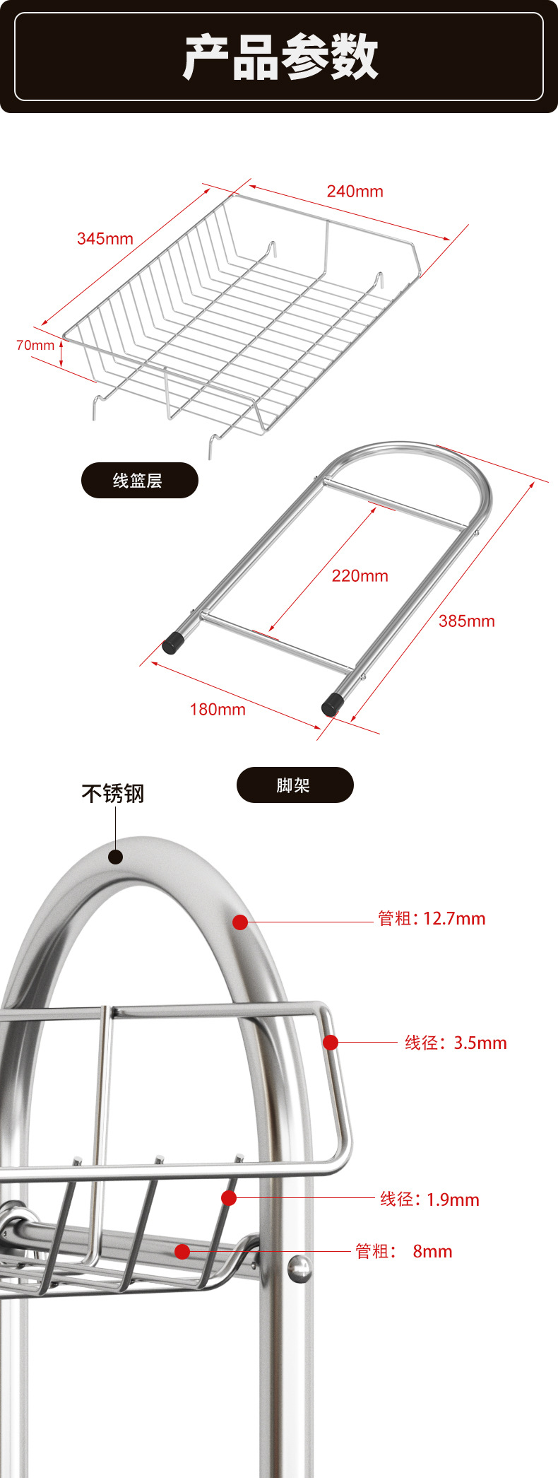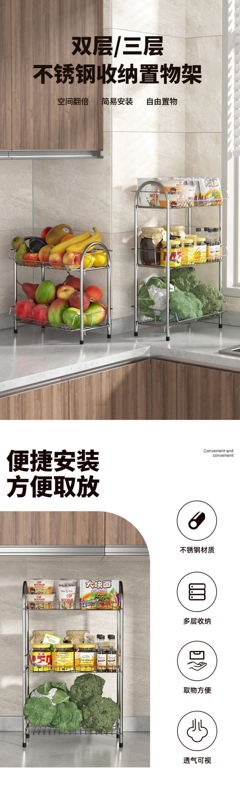 不锈钢厨房置物架