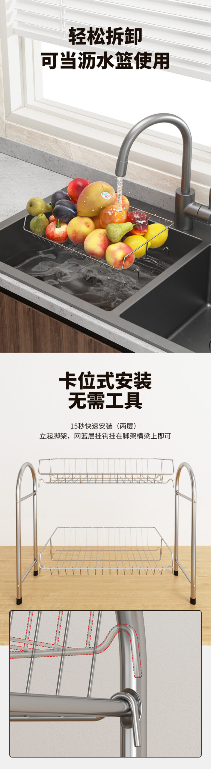 不锈钢伸缩沥水厨房置物架